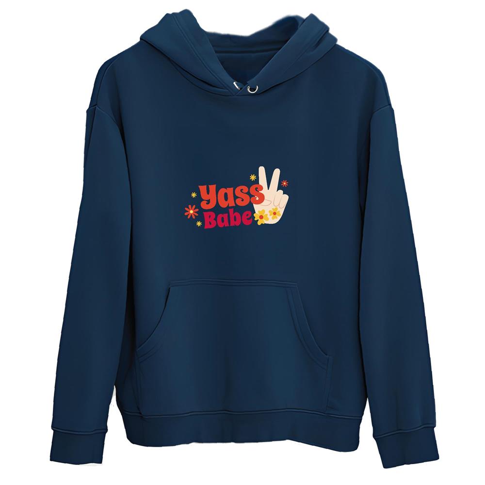 Peace Hand Sign Celebratory Gift Quote Yass Babe Fun Tee Gifts for All Navy and Muticolor Unisex Hoodie