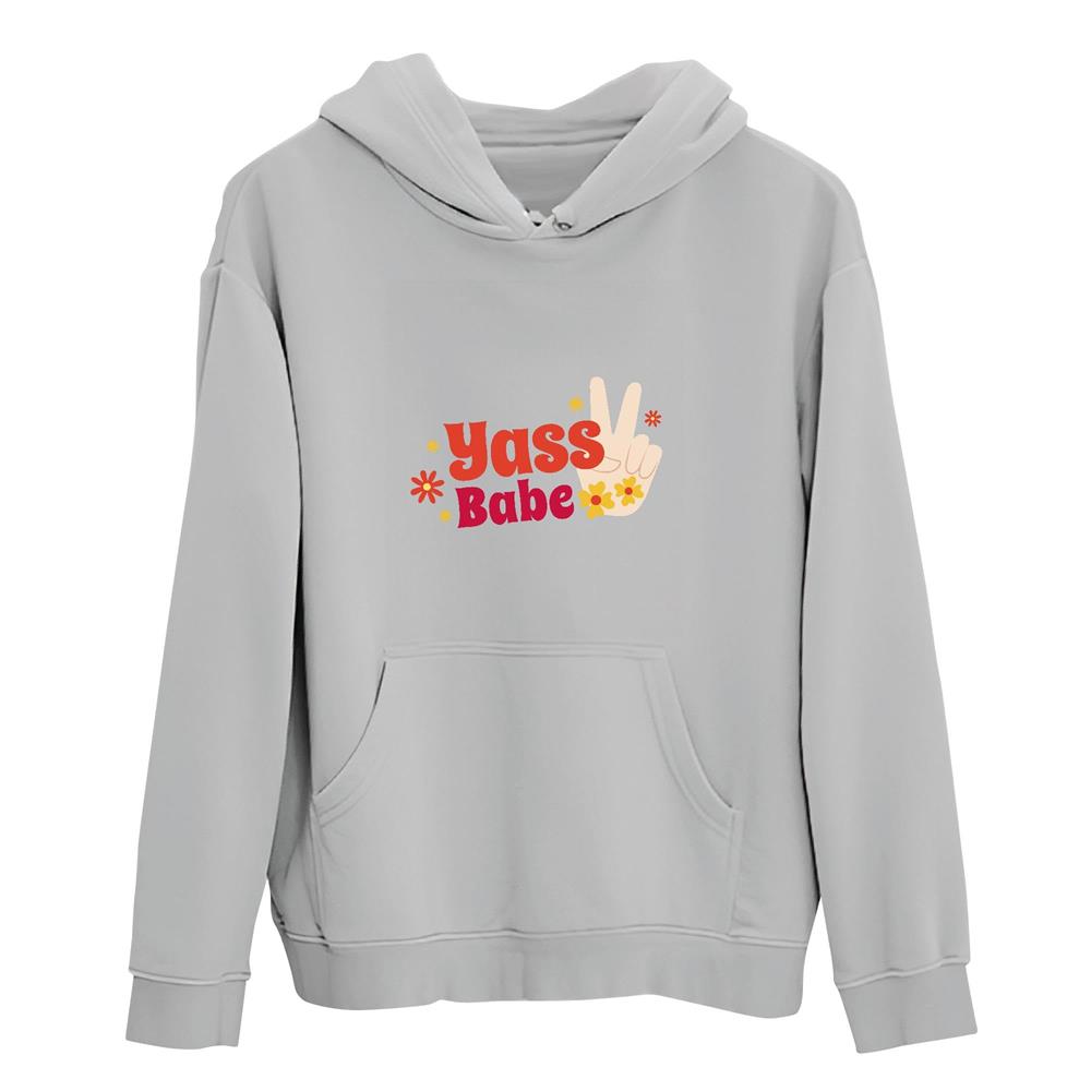 Peace Hand Sign Celebratory Gift Quote Yass Babe Fun Tee Gifts for All Gray and Muticolor Unisex Hoodie