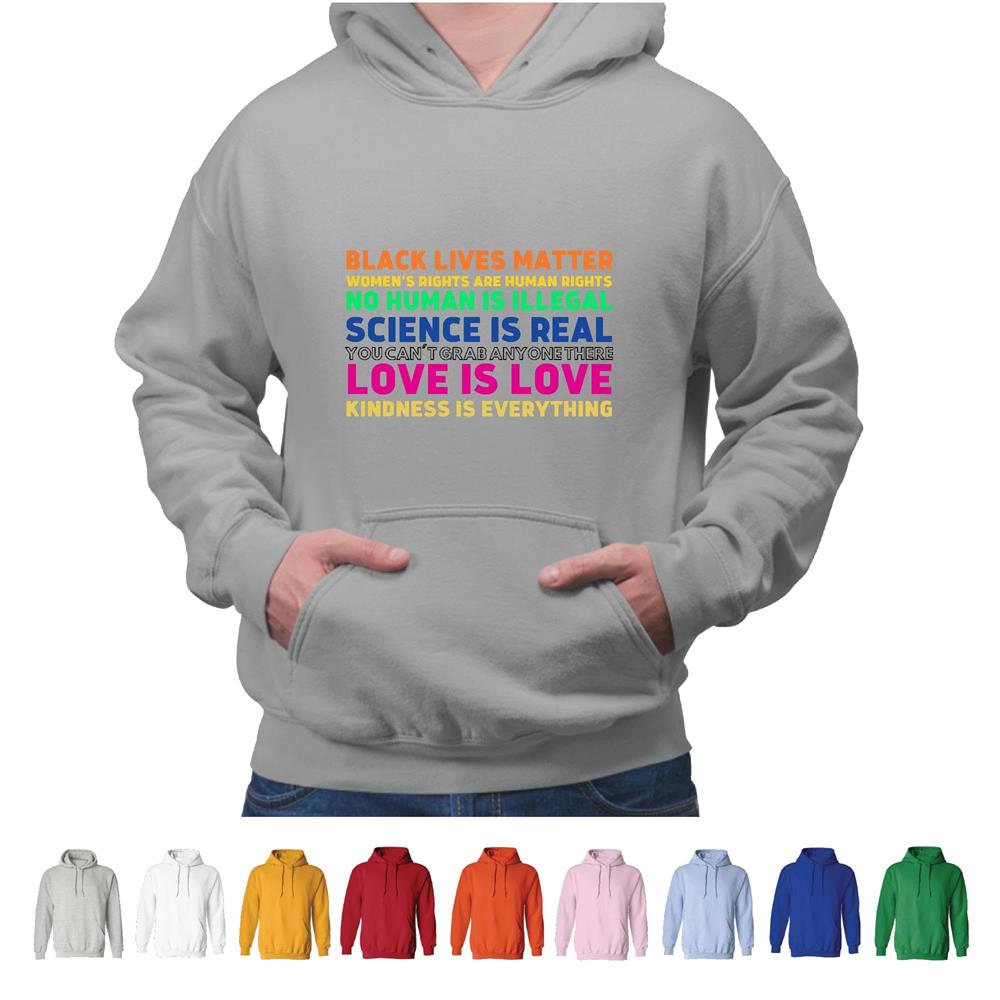 Peace Love Humor Quote Women Human Rights Science Kindness for Activists Black and Muticolor Unisex Hoodie