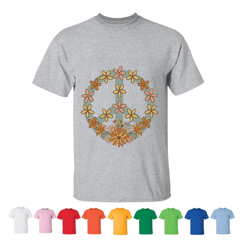 Peace Sign Hippie 70s Men Women White Gray T shirt