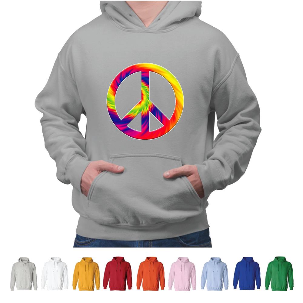 Peace Sign Hippie 70s love support freedom Black and Muticolor Unisex Hoodie