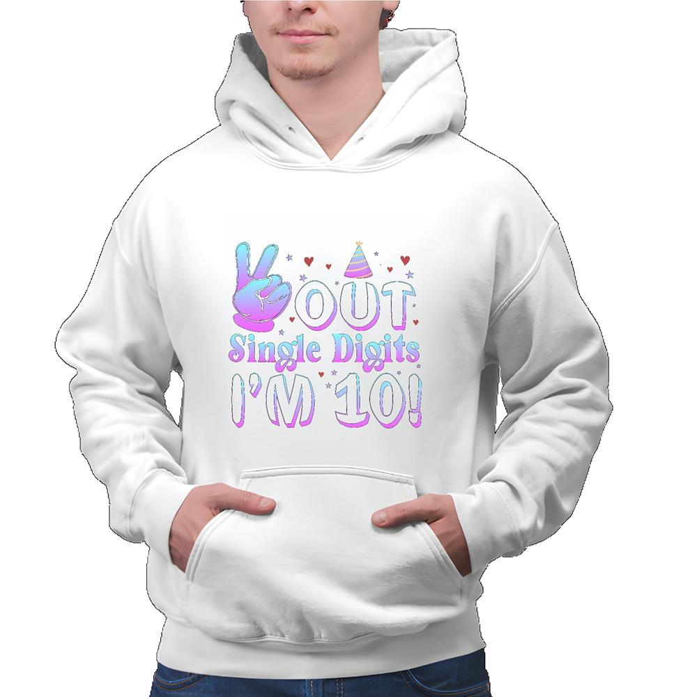 Peace Symbol Out Single Digits I am 10 Year Old 10th Gray and Muticolor Unisex Hoodie