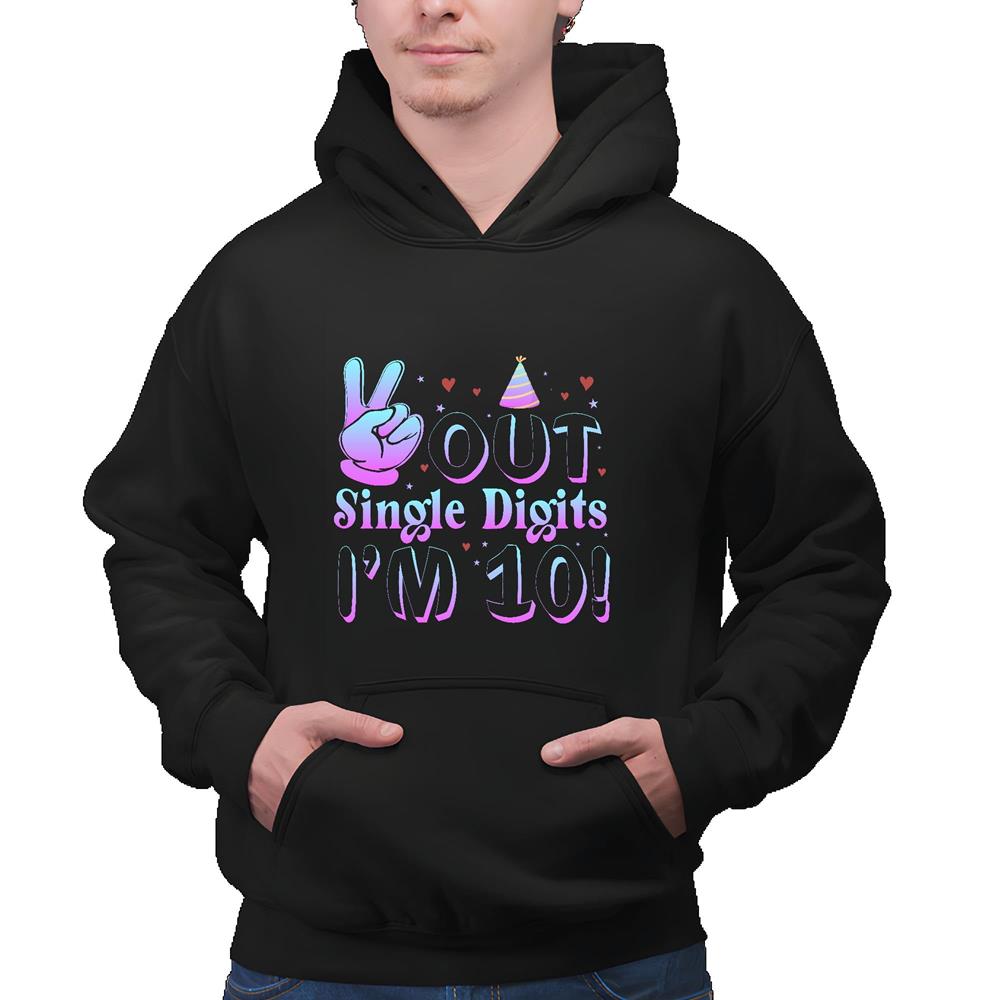 Peace Symbol Out Single Digits I am 10 Year Old 10th Black and Muticolor Unisex Hoodie