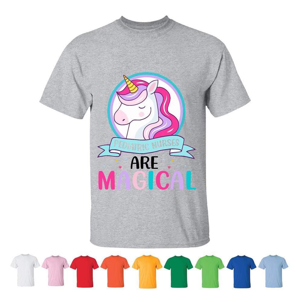 Pediatric Nurses are Magical Unicorn Men Women White Gray T shirt