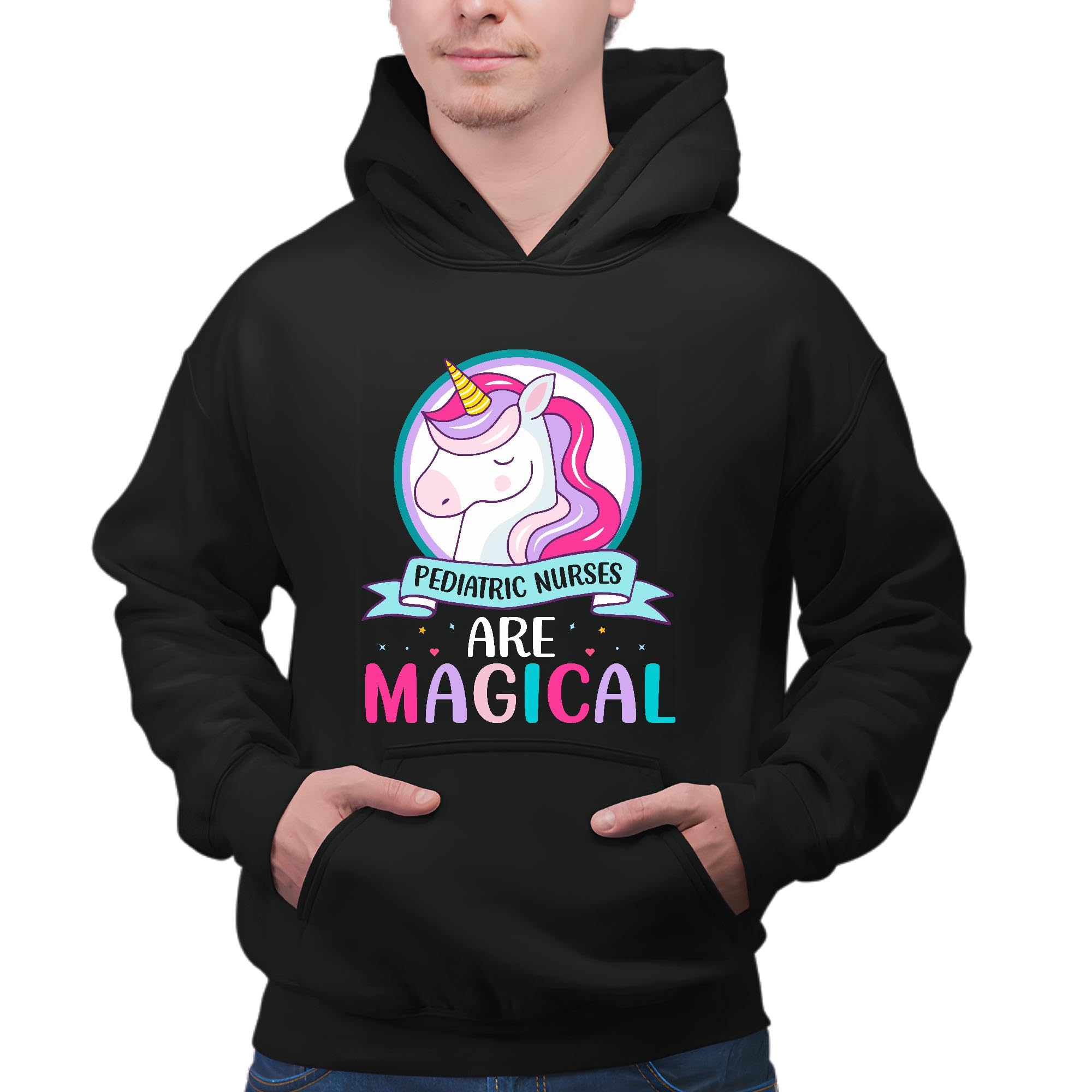 Pediatric Nurses are Magical Unicorn Black and Muticolor Unisex Hoodie