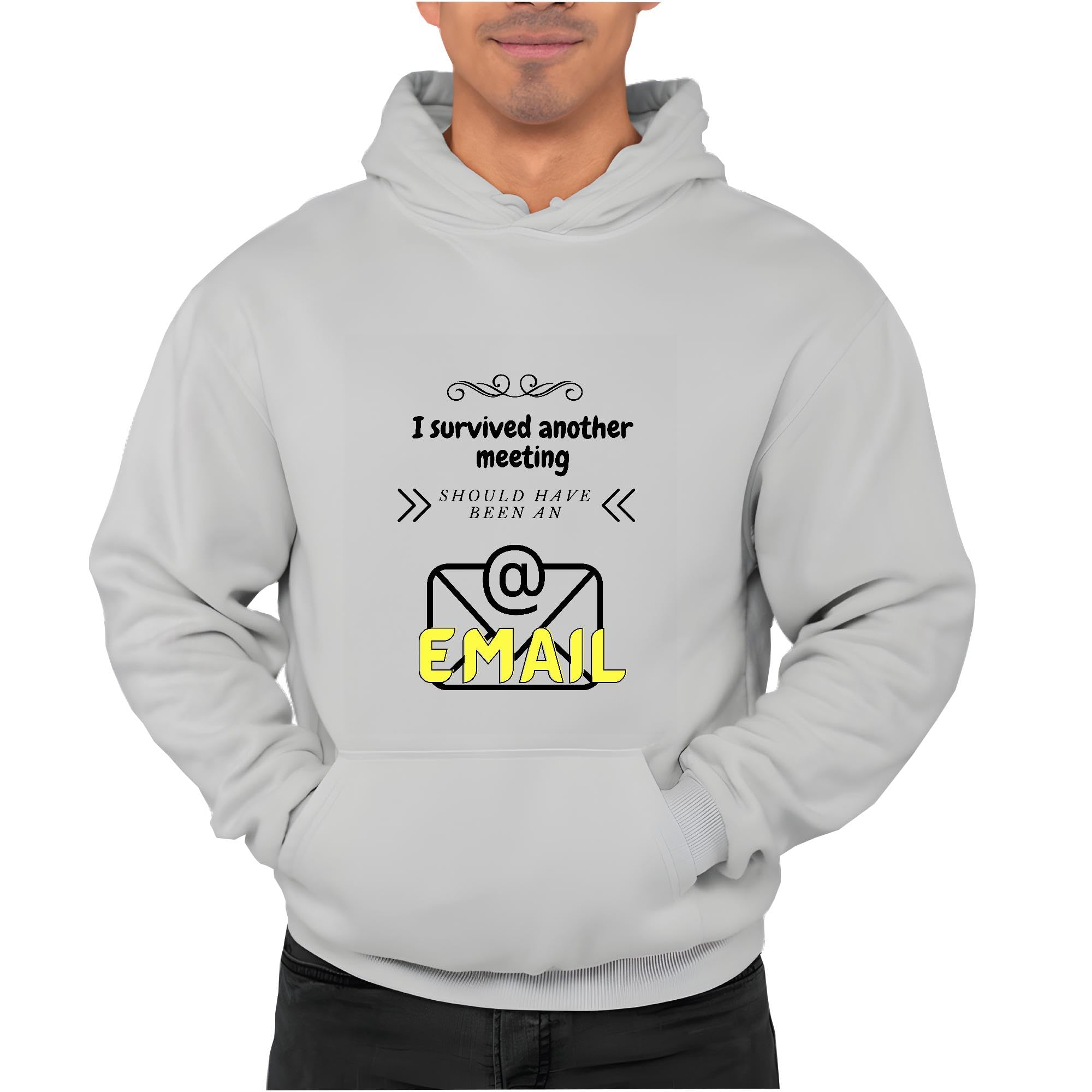 Perfect Gift for Office Professionals I Survived Another Meeting Humor Sarcasm Hoodie Gray and Muticolor Unisex Hoodie