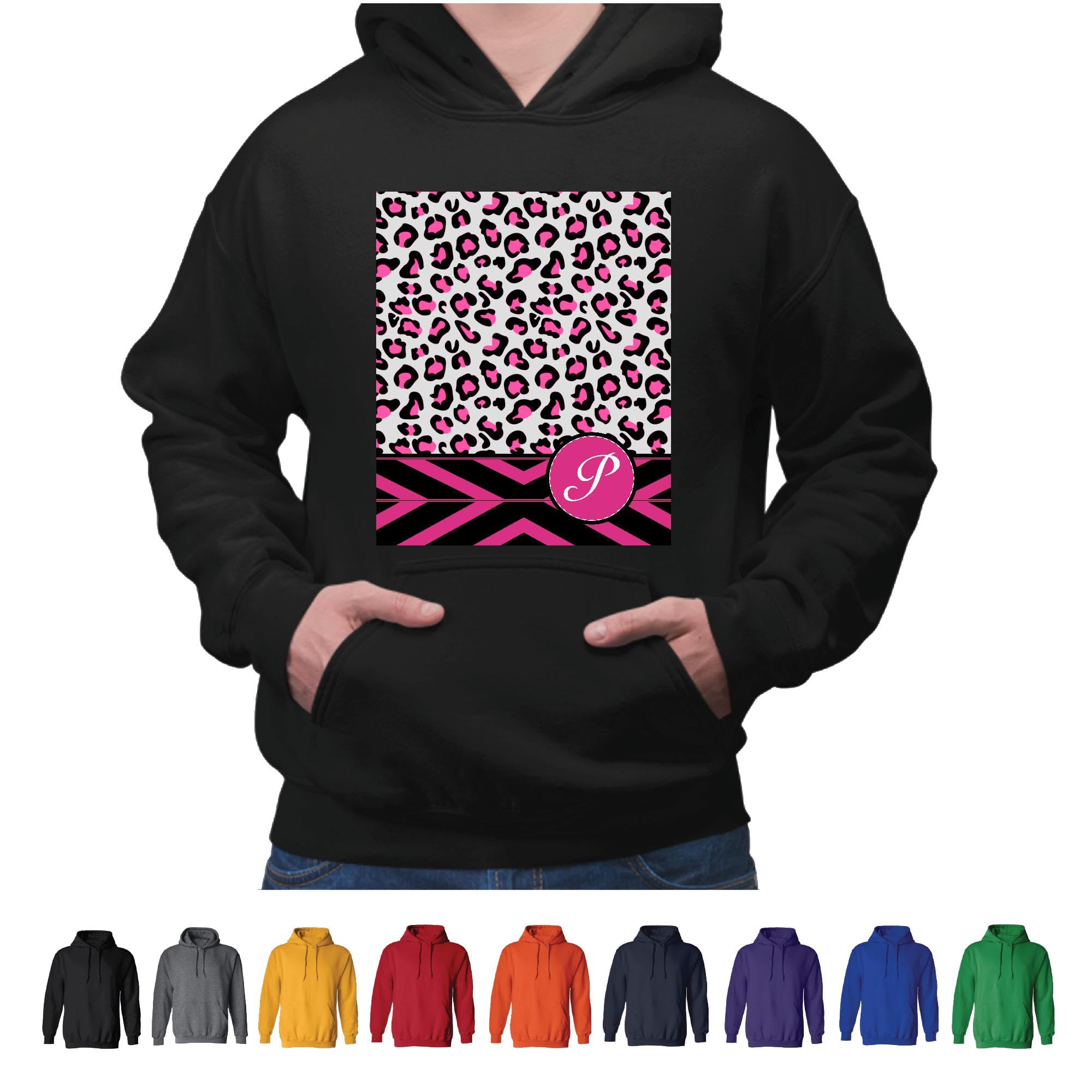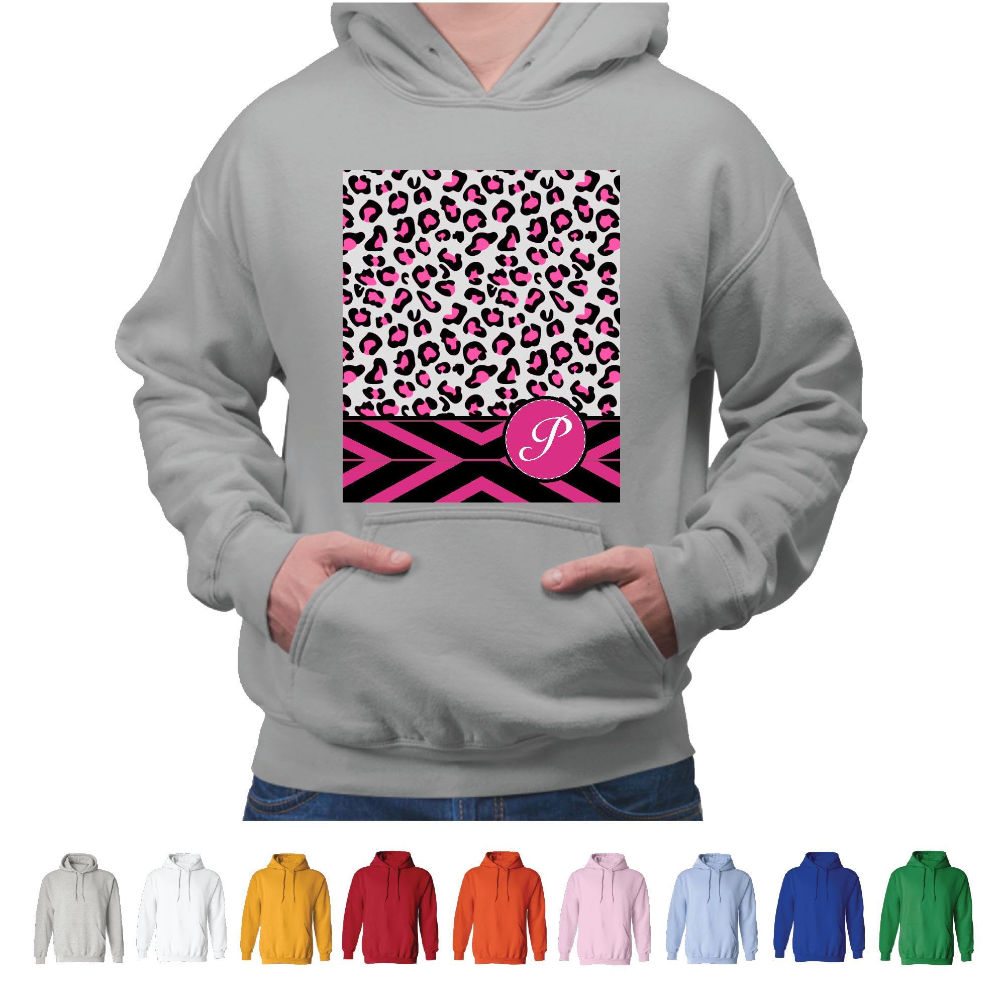 Personalized Hot Pink and Black Leopard Pattern Gift for Her Gray and Muticolor Unisex Hoodie