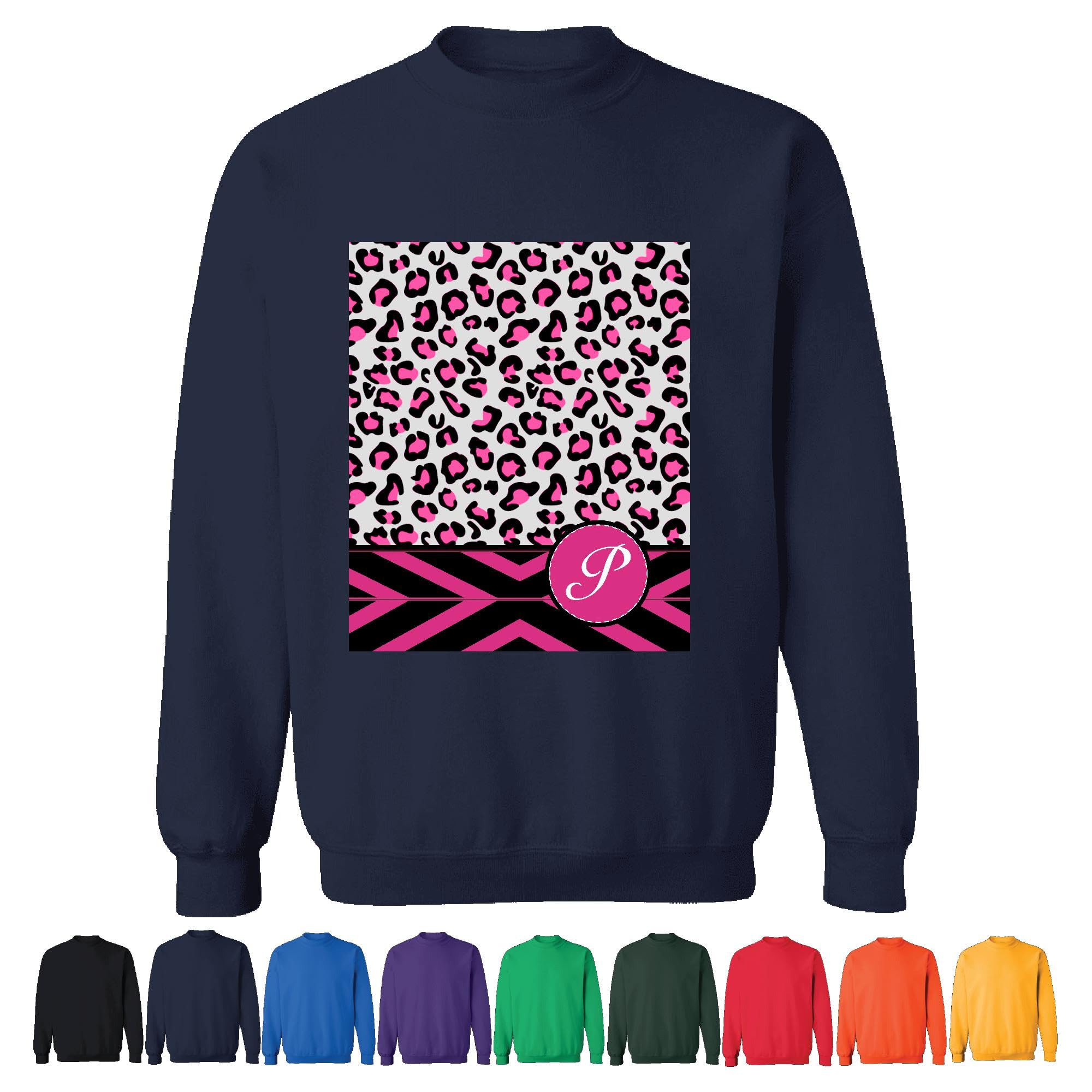 Personalized Hot Pink and Black Leopard Pattern Gift for Her Navy Muticolor Unisex Sweatshirt