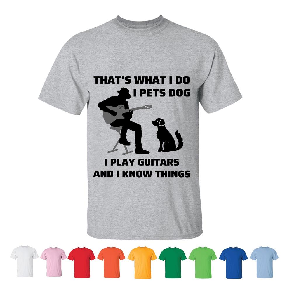 Pet Dog Playing Guitar Humor Saying Idea for Dog Lovers Know Things Men Women White Gray T shirt
