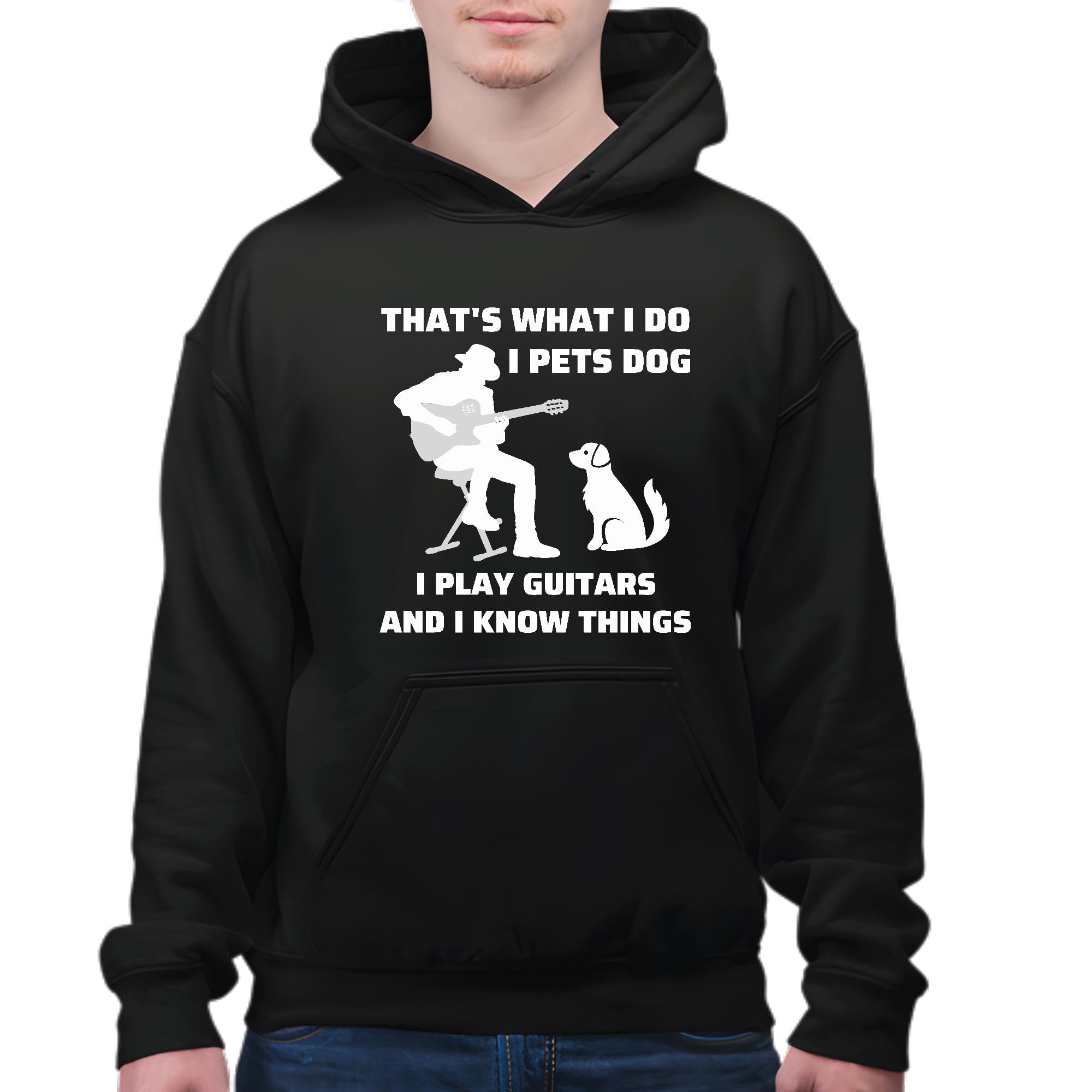 Pet Dog Playing Guitar Humor Saying Idea for Dog Lovers Know Things Black and Muticolor Unisex Hoodie
