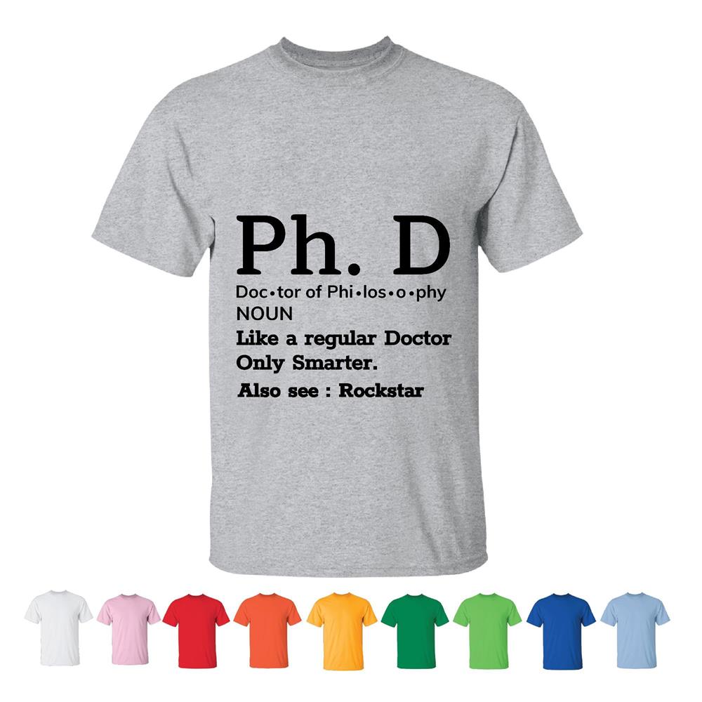 PhD Graduates Gift Idea Inspirational Sarcasm for Motivation Men Women White Gray T shirt
