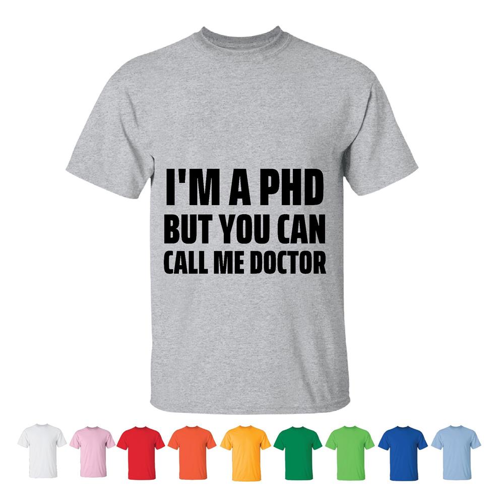 PhD Graduation I am a but you can call me Doctor funny saying Men Women White Gray T shirt