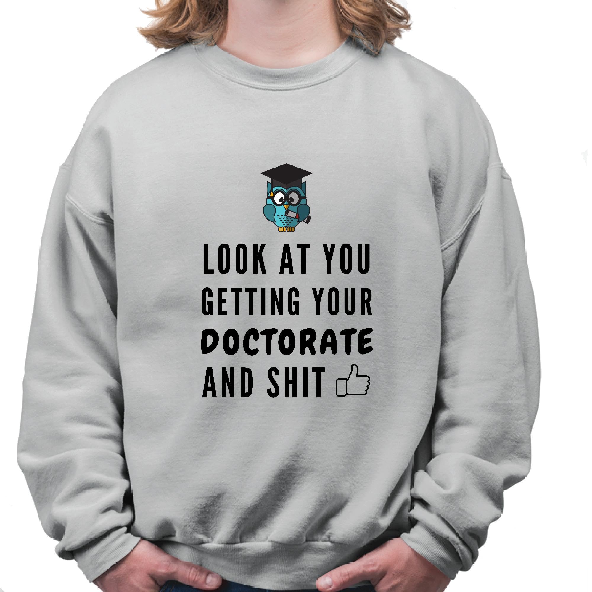 PhD Graduation Gift for Students Funny Gag Gift Idea Grey Muticolor Unisex Sweatshirt