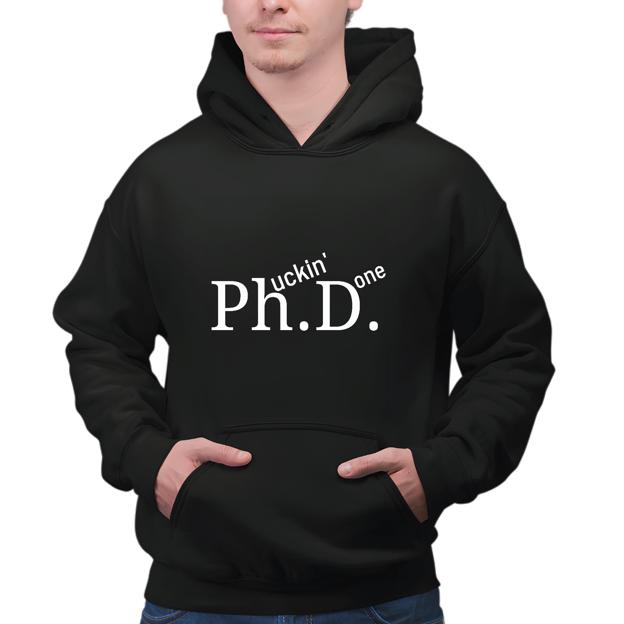 PhD Graduation Humorous Sarcasm Gift Perfect for Done Finished Student Scientist Doctor Dr Black and Muticolor Unisex Hoodie
