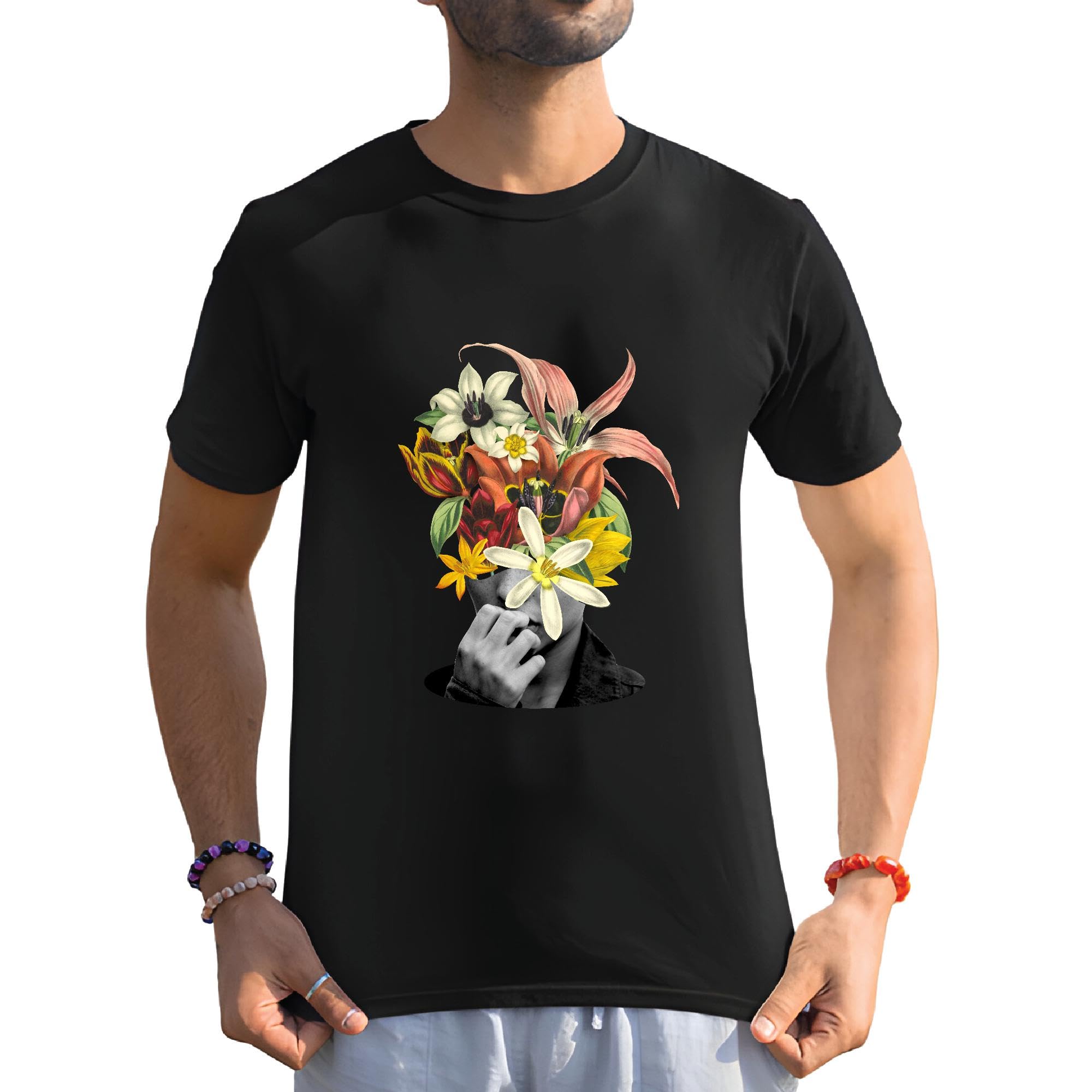 Photographic Style Flowers Head Gift for Art Lovers and Photographers Men Women Black Multicolor T shirt
