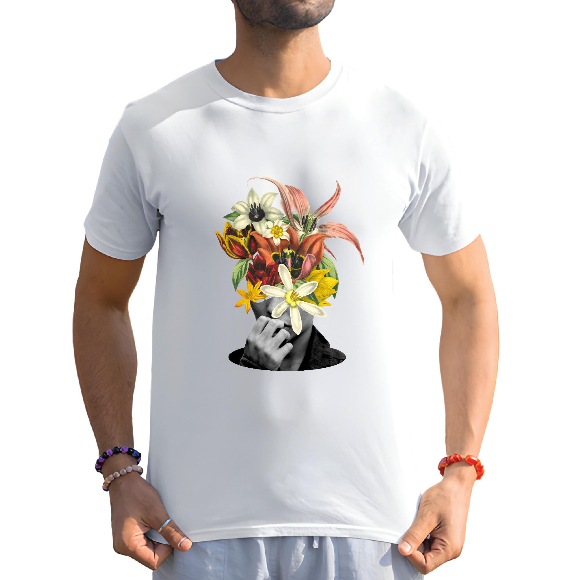 Photographic Style Flowers Head Gift for Art Lovers and Photographers Men Women White Gray Multicolor T shirt