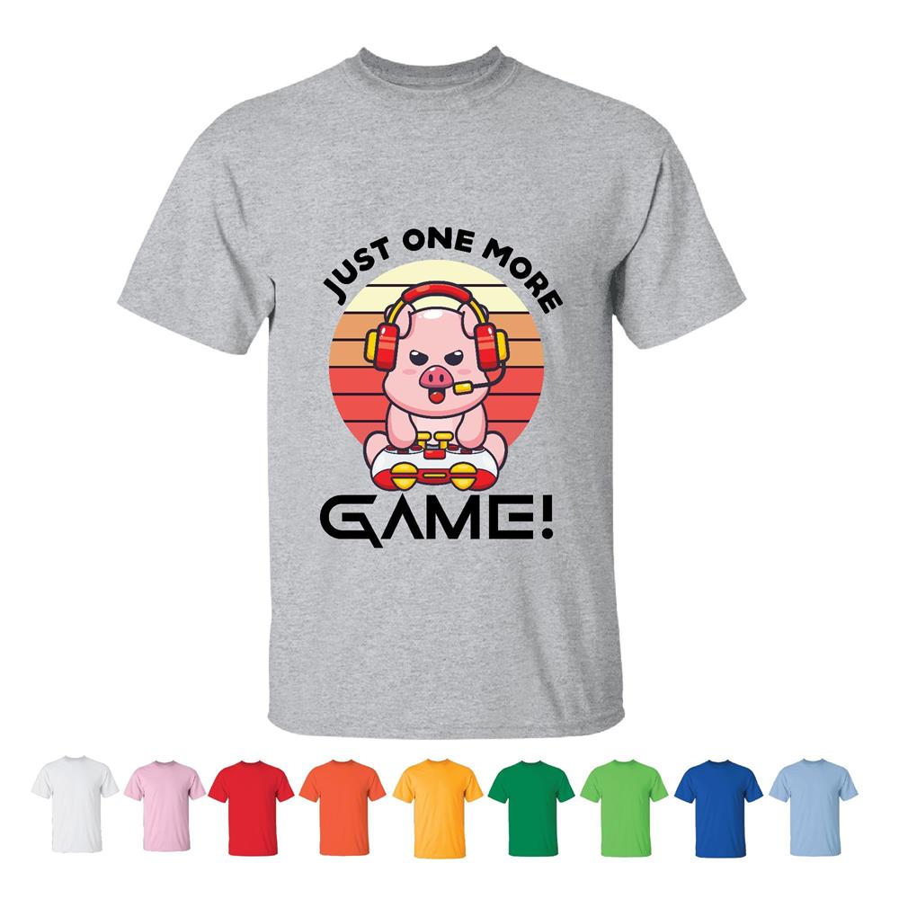 Pig with Gamer headset Gaming Pig just one more game addict Men Women White Gray T shirt