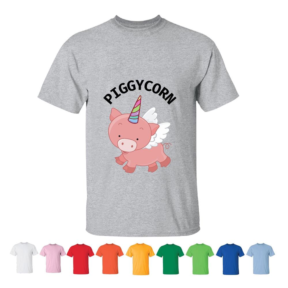 Piggycorn Cute Pig Unicorn Magical Fantasy Farm Animals Cartoon Gift for Kids Adults Men Women White Gray T shirt