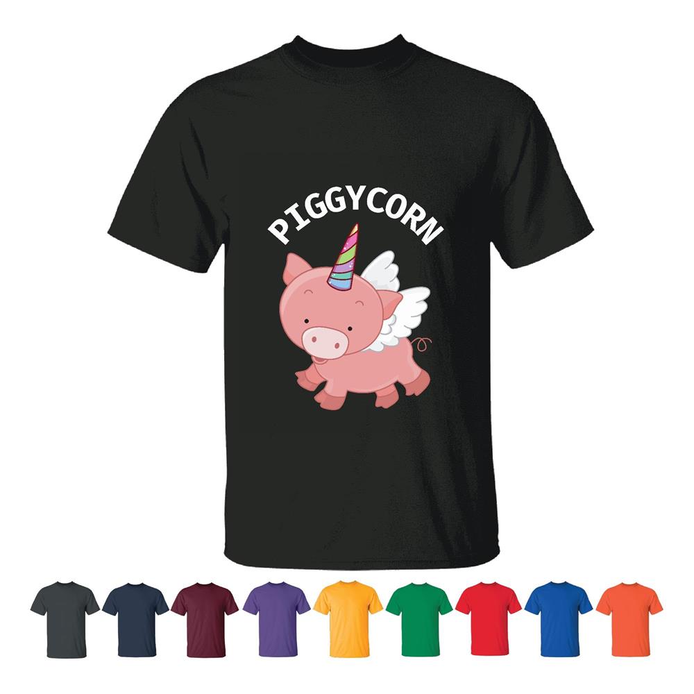 Piggycorn Cute Pig Unicorn Magical Fantasy Farm Animals Cartoon Gift for Kids Adults Men Women Black T shirt