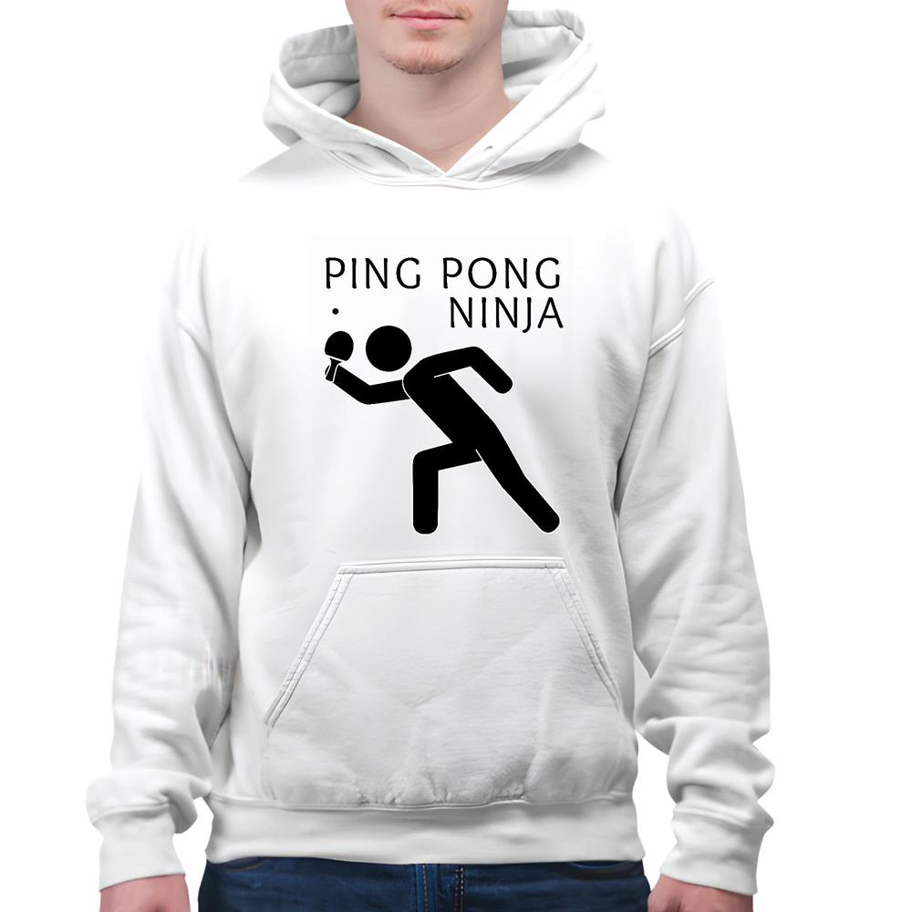 Ping Ninja for Sports Table Tennis Player White and Muticolor Unisex Hoodie