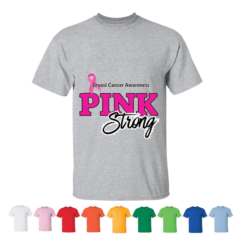 Pink Ribbon Breast Cancer Awareness Gift for Survivors Advocates Families Men Women White Gray T shirt