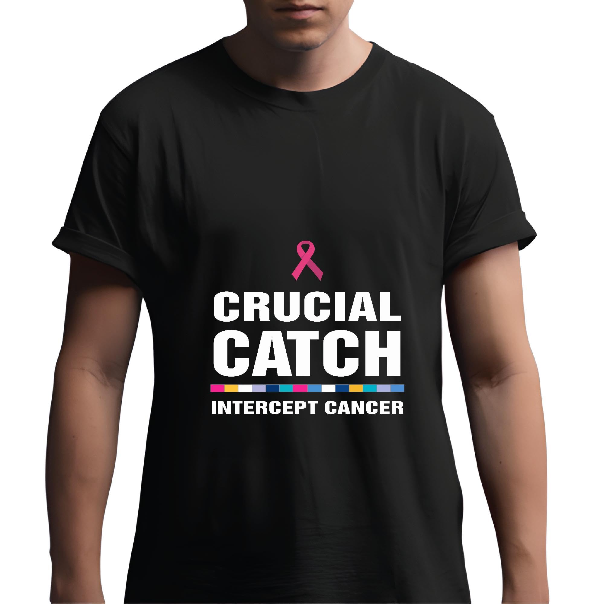 Pink ribbon awareness Crucial support Catch intercept Cancer Men Women Black Multicolor T shirt