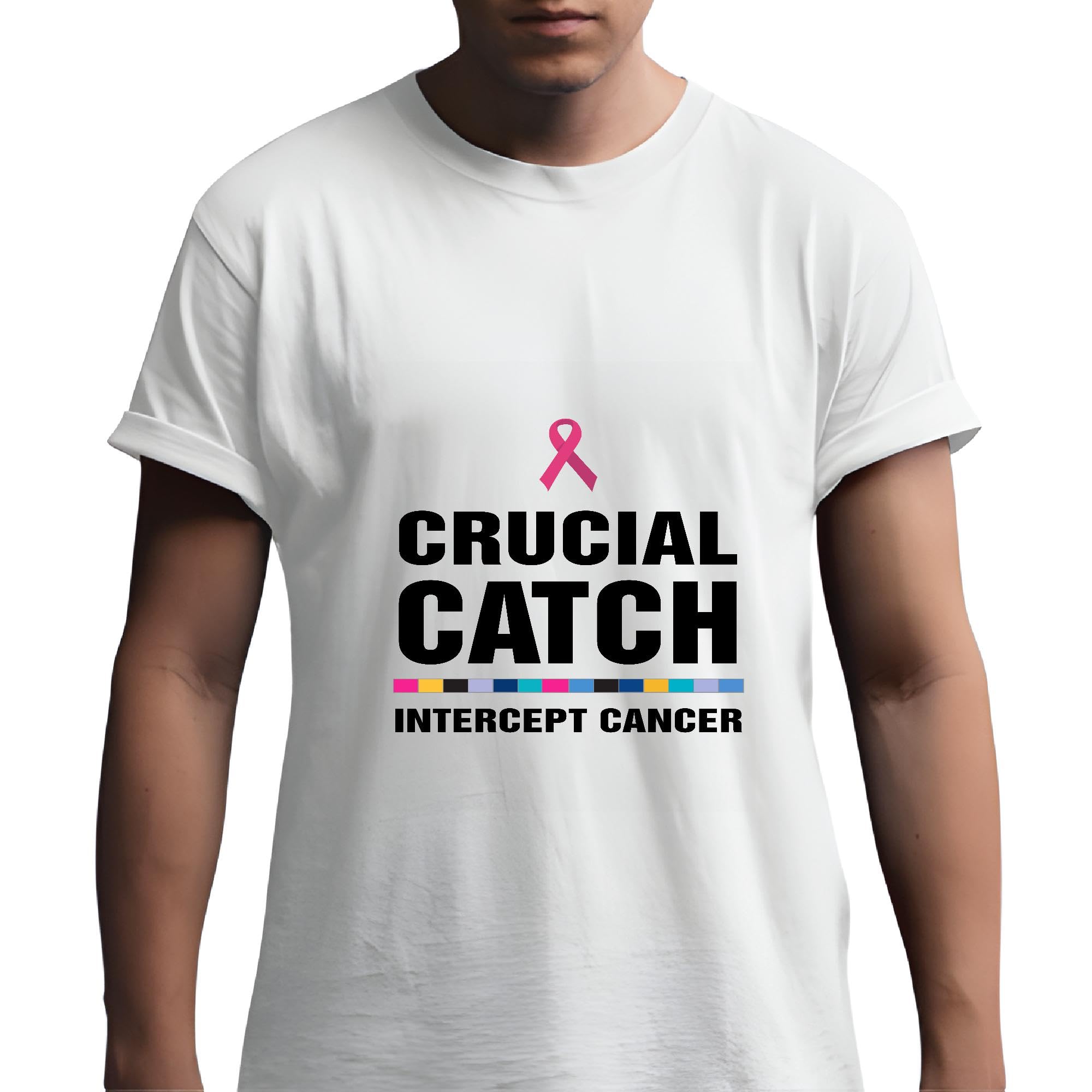Pink ribbon awareness Crucial support Catch intercept Cancer Men Women White Gray Multicolor T shirt