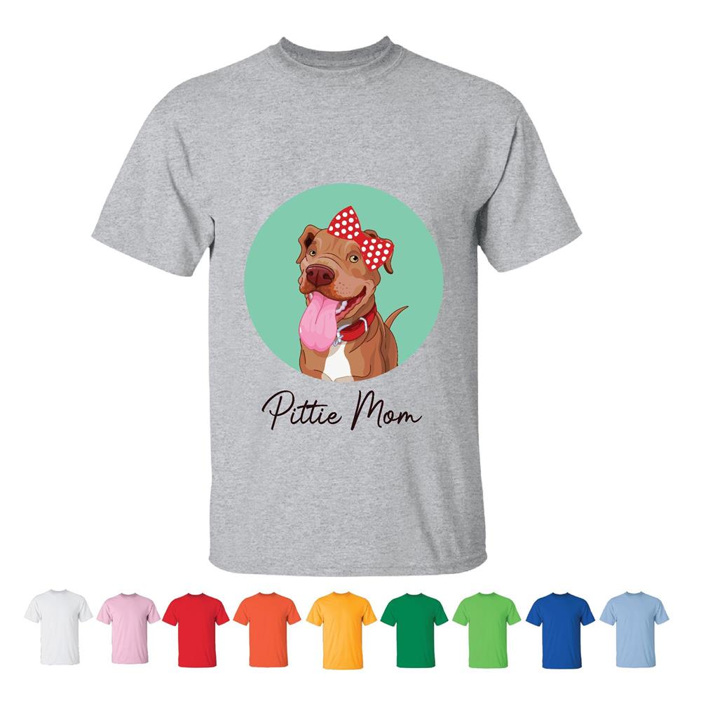 Pittie Mom Gift for PIT BULL Dogs Lovers For All Age Groups Men Women White Gray T shirt