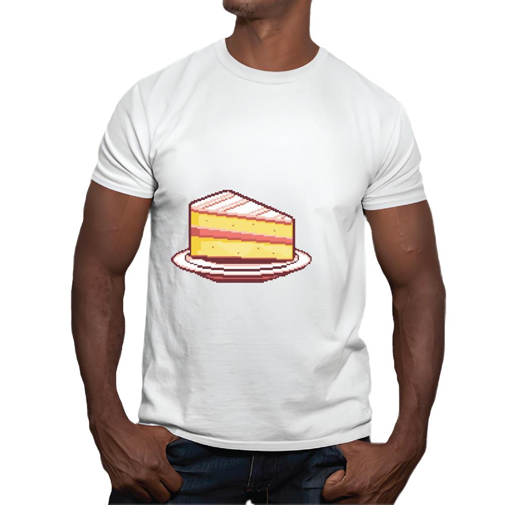 Pixel Cake Gift for Kids Pixelated Piece of Cake Cake for Children Men Women White Gray Multicolor T shirt
