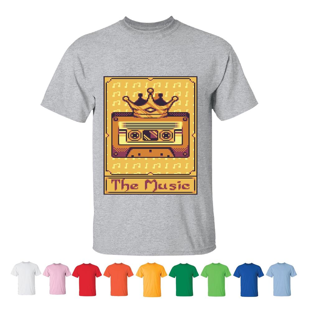 Pixel Art Tarot Card Music Cassette Gift for Music Lovers and Tarot Card Enthusiasts Men Women White Gray T shirt