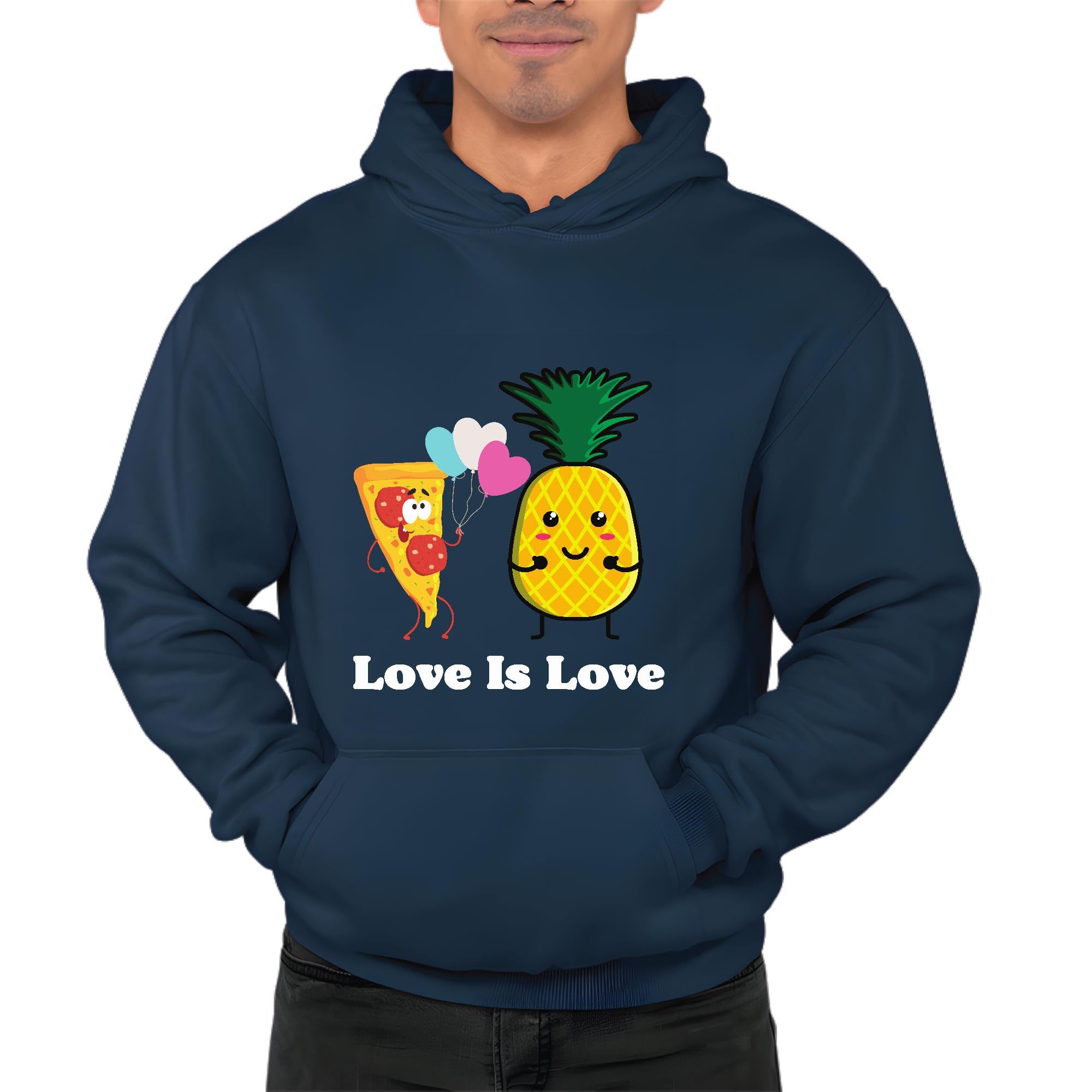 Pizza and Pineapple love graphic for couple Navy and Muticolor Unisex Hoodie