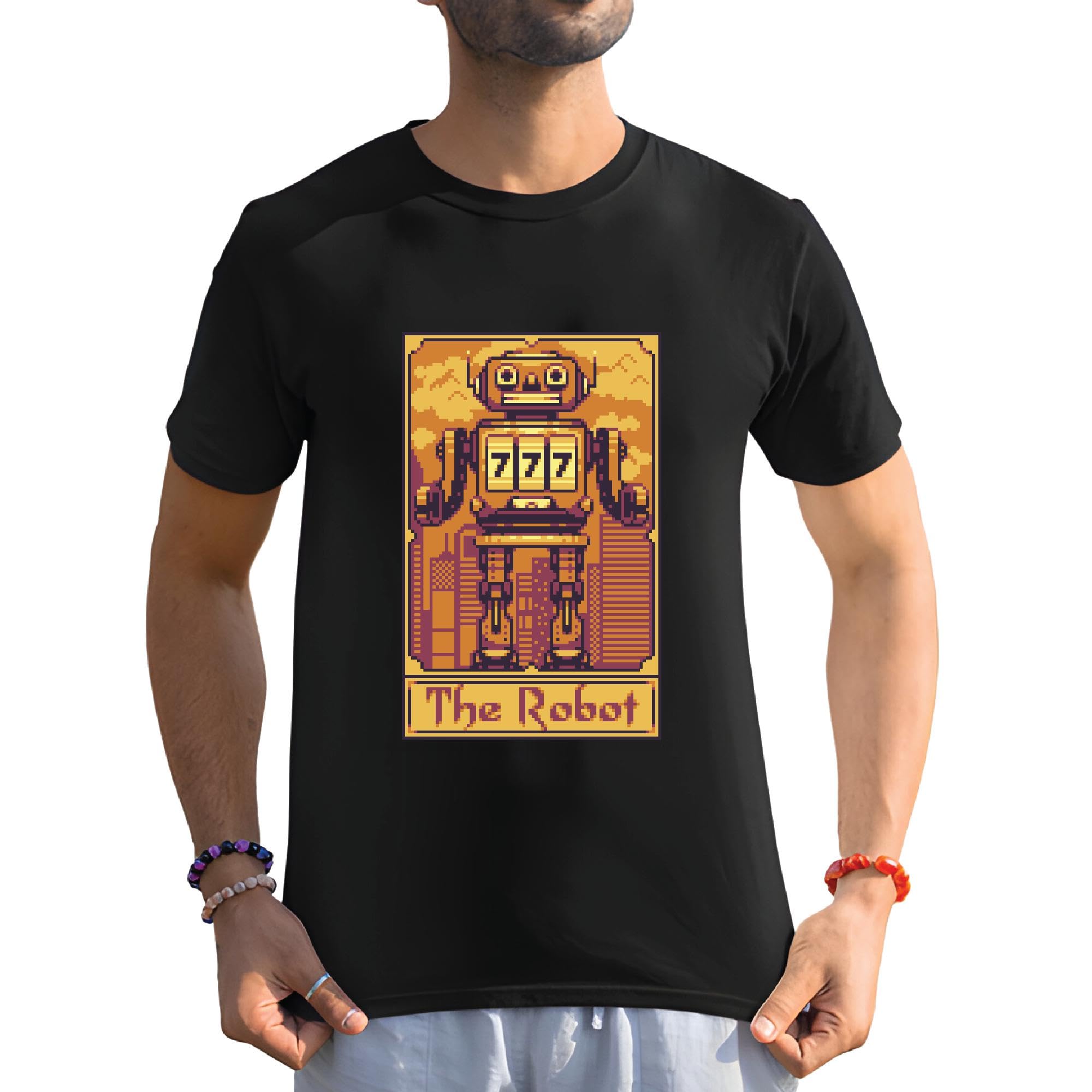 Pixel Art Tarot Card Robot Gift for Robot Lovers and Tarot Card Enthusiasts Men Women Black Multicolor T shirt