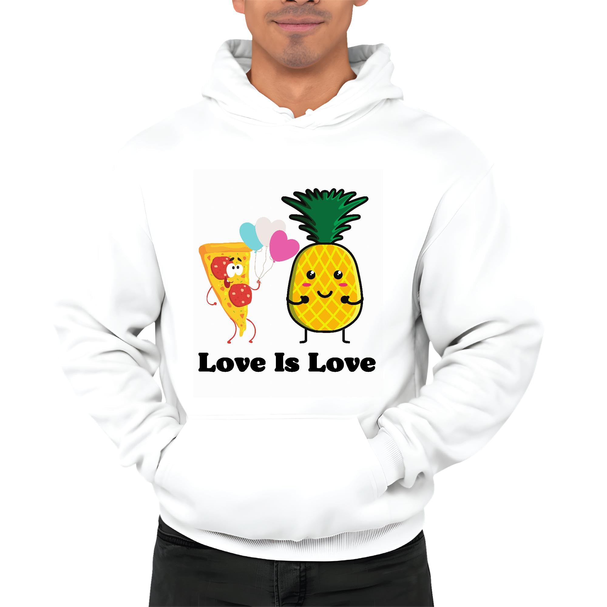 Pizza and Pineapple love graphic for couple White and Muticolor Unisex Hoodie