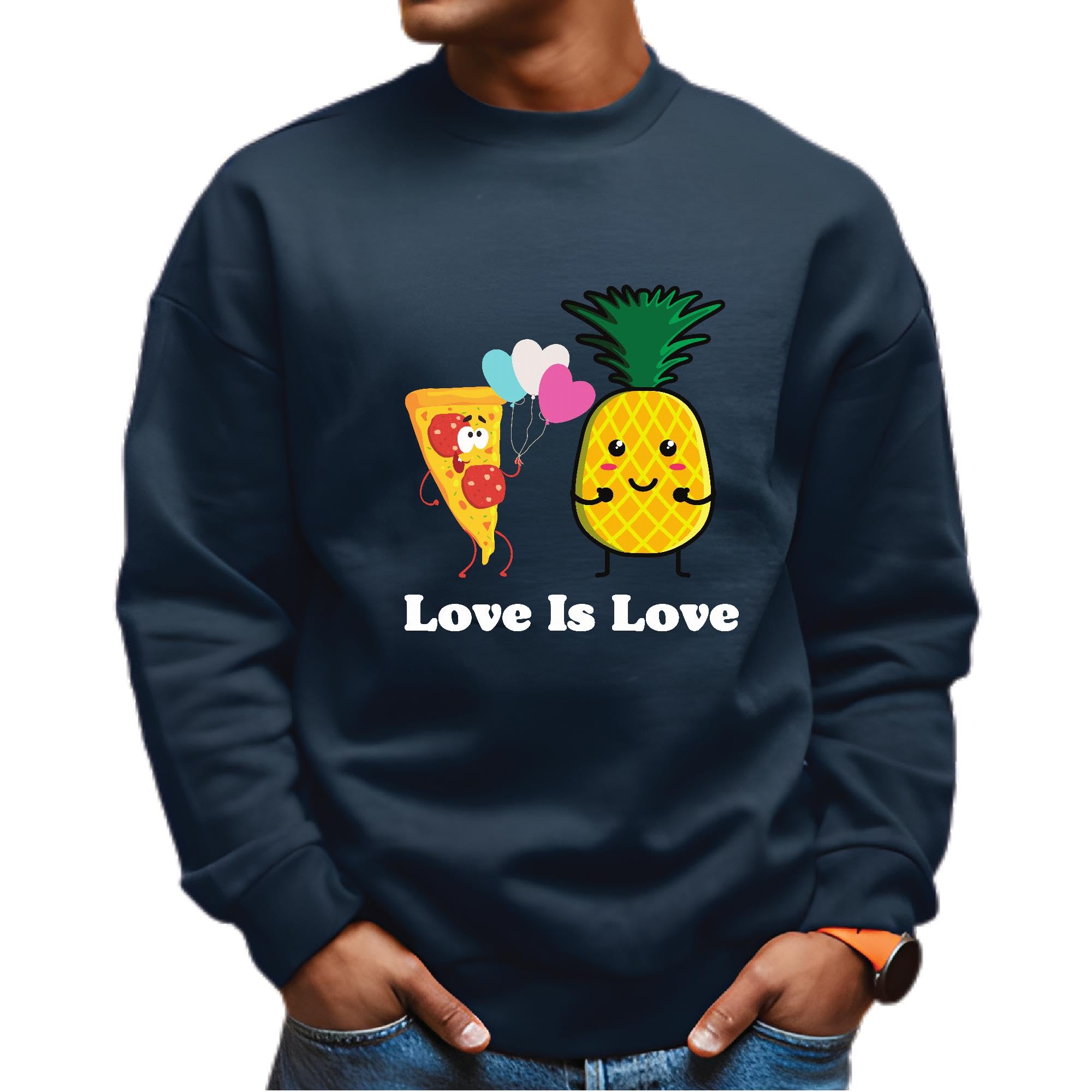 Pizza and Pineapple love graphic for couple Navy Muticolor Unisex Sweatshirt