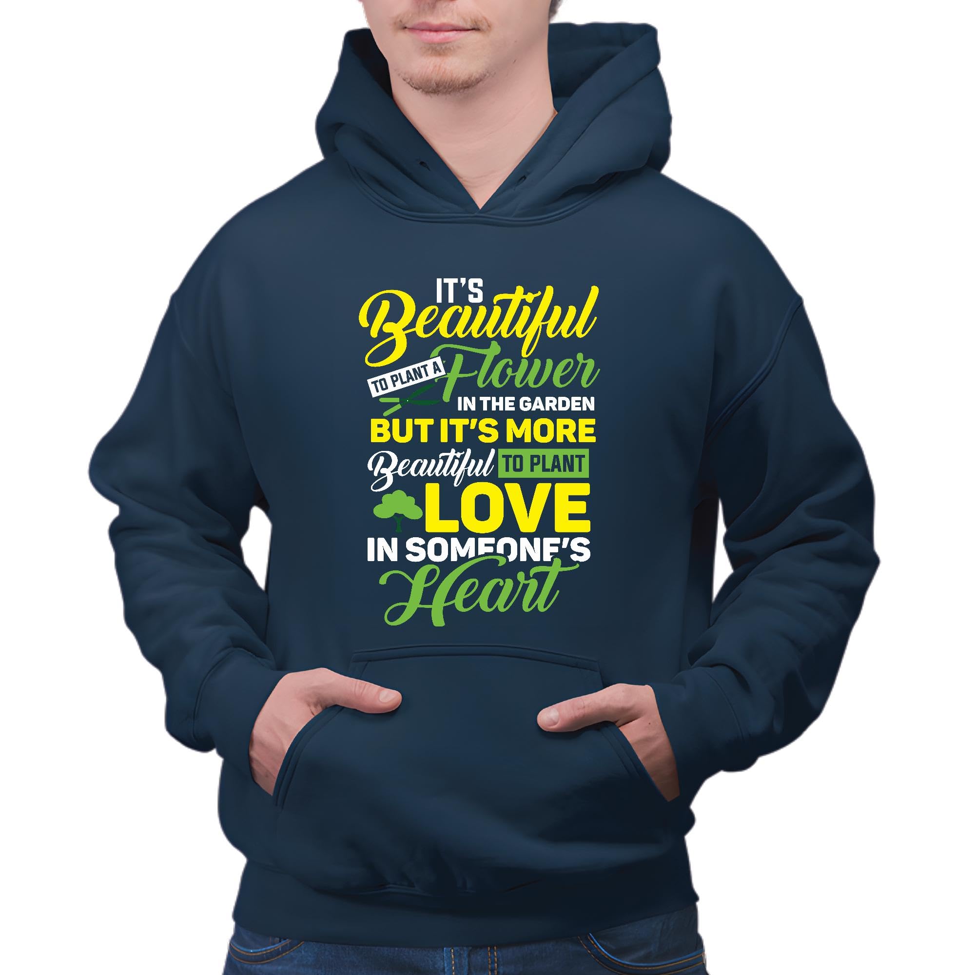 Plant Love in Someone Heart Motivation Quote Gift for Friends Family Navy and Muticolor Unisex Hoodie