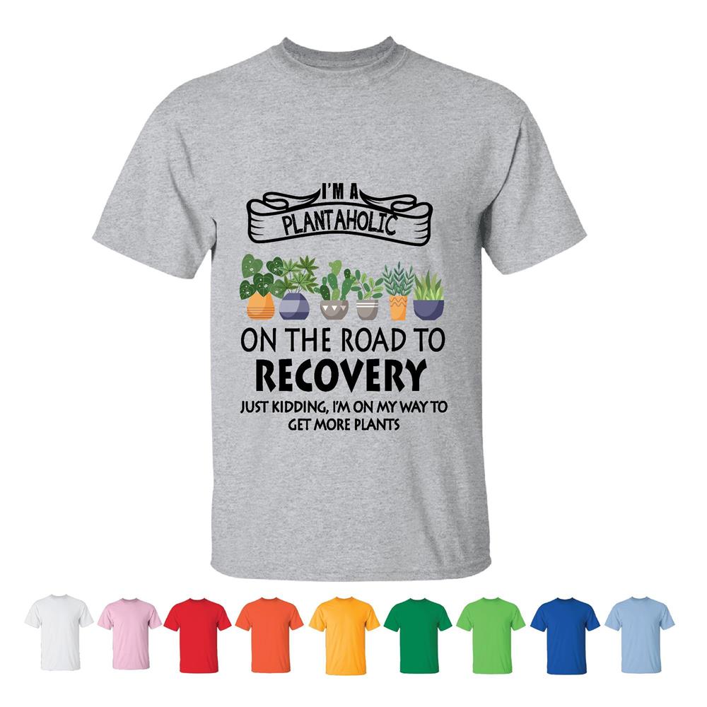 Plantaholic Recovery Gift for Plant Grower Cultivator Planting Humor Men Women White Gray T shirt