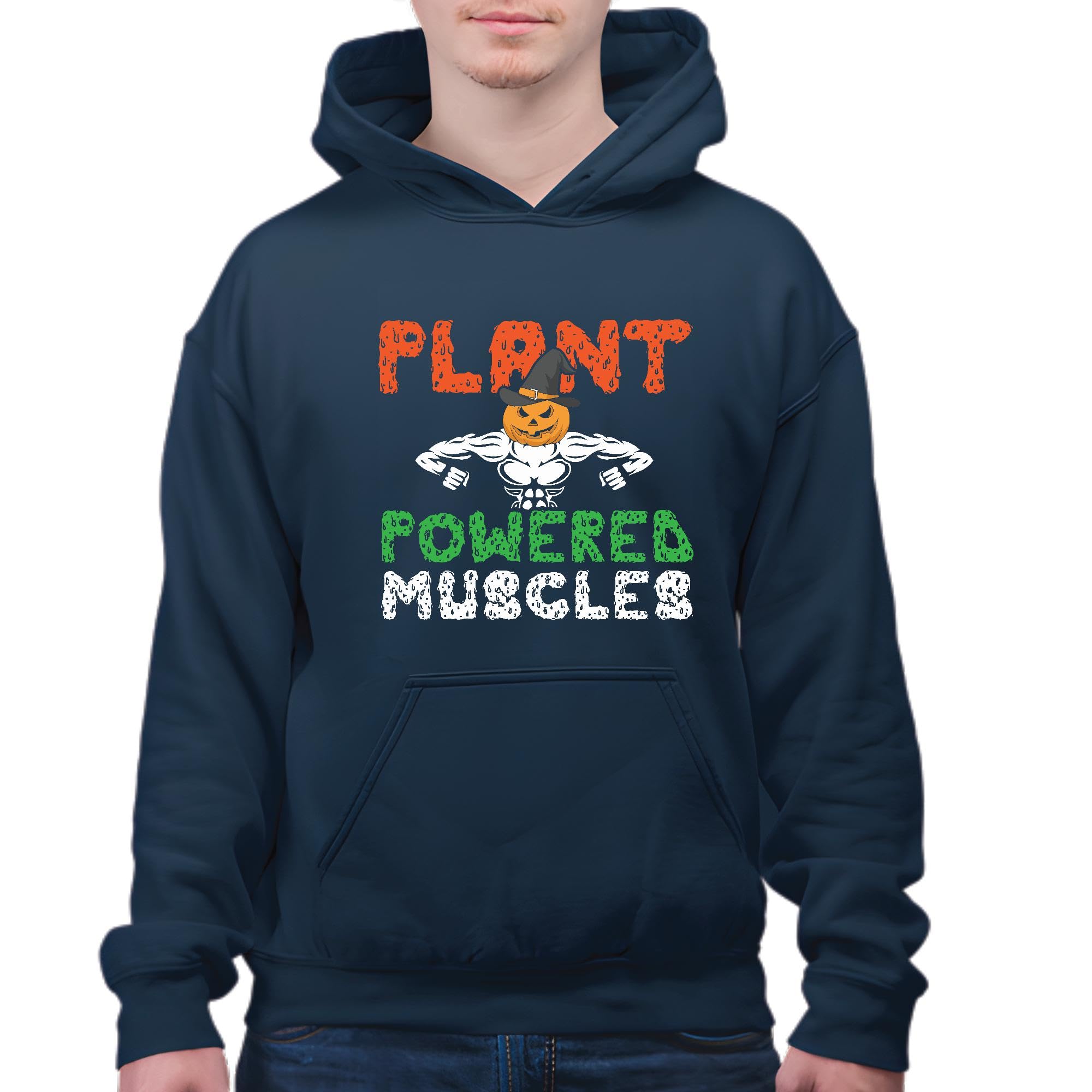 Plant-Powered Muscle Gift for Vegan Power Bodybuilding Gym Enthusiasts Navy and Muticolor Unisex Hoodie