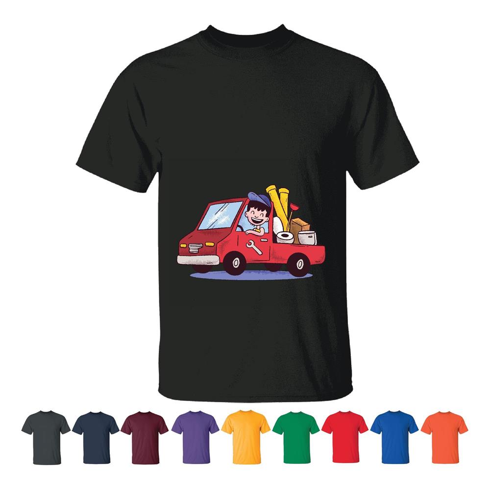 Plumber Cartoon Gift for Plumber Fans Funny Truck Design Men Women Black T shirt