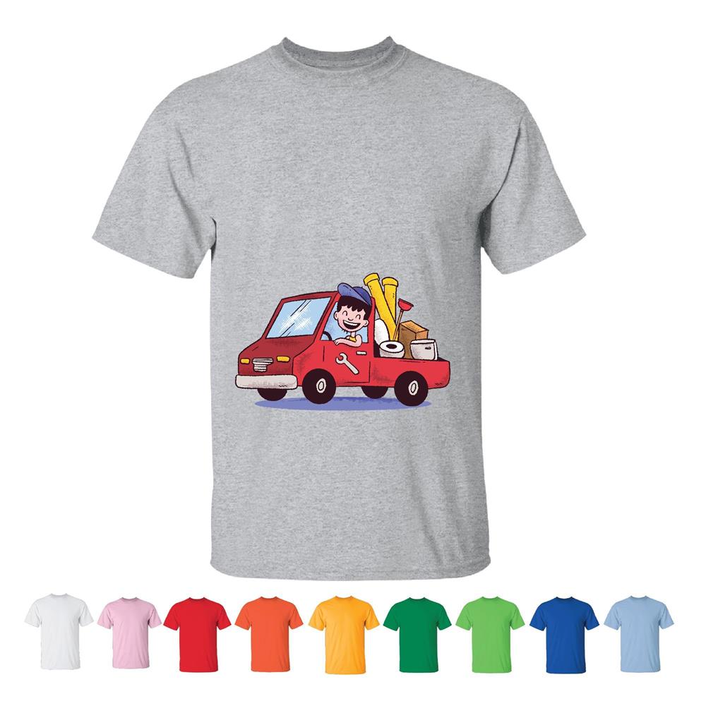 Plumber Cartoon Gift for Plumber Fans Funny Truck Design Men Women White Gray T shirt