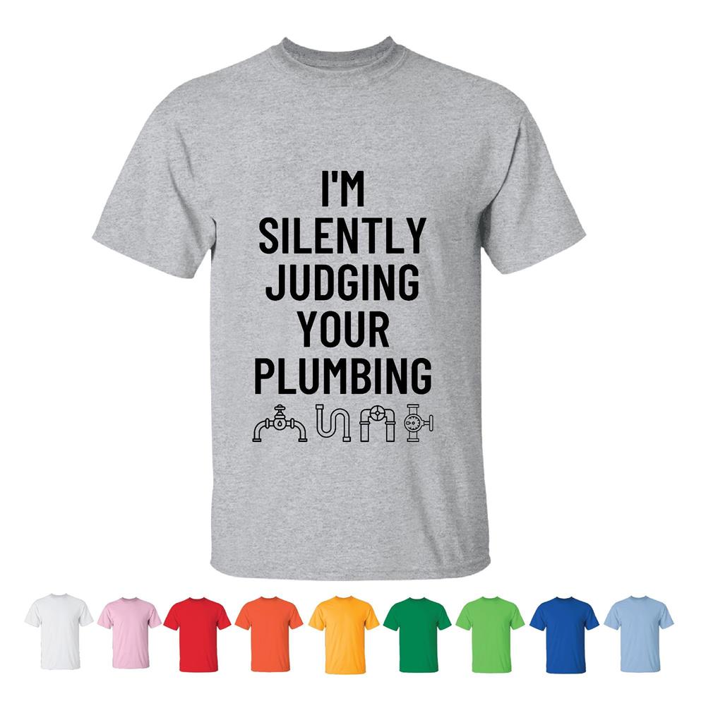 Plumbing Professional Gift idea for Plumber Fans I Am Silently Judging Men Women White Gray T shirt