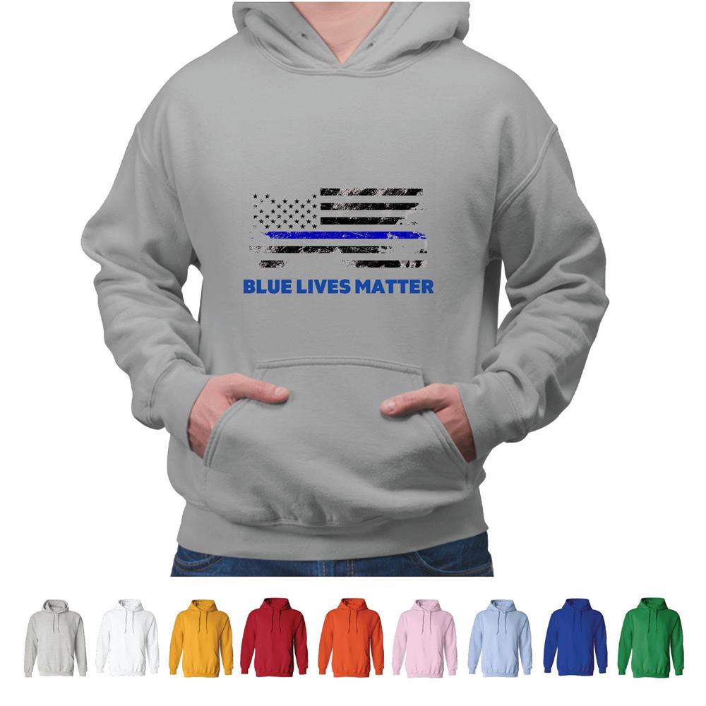 Police Lives Matter Flag Gift for Supporters Gray and Muticolor Unisex Hoodie