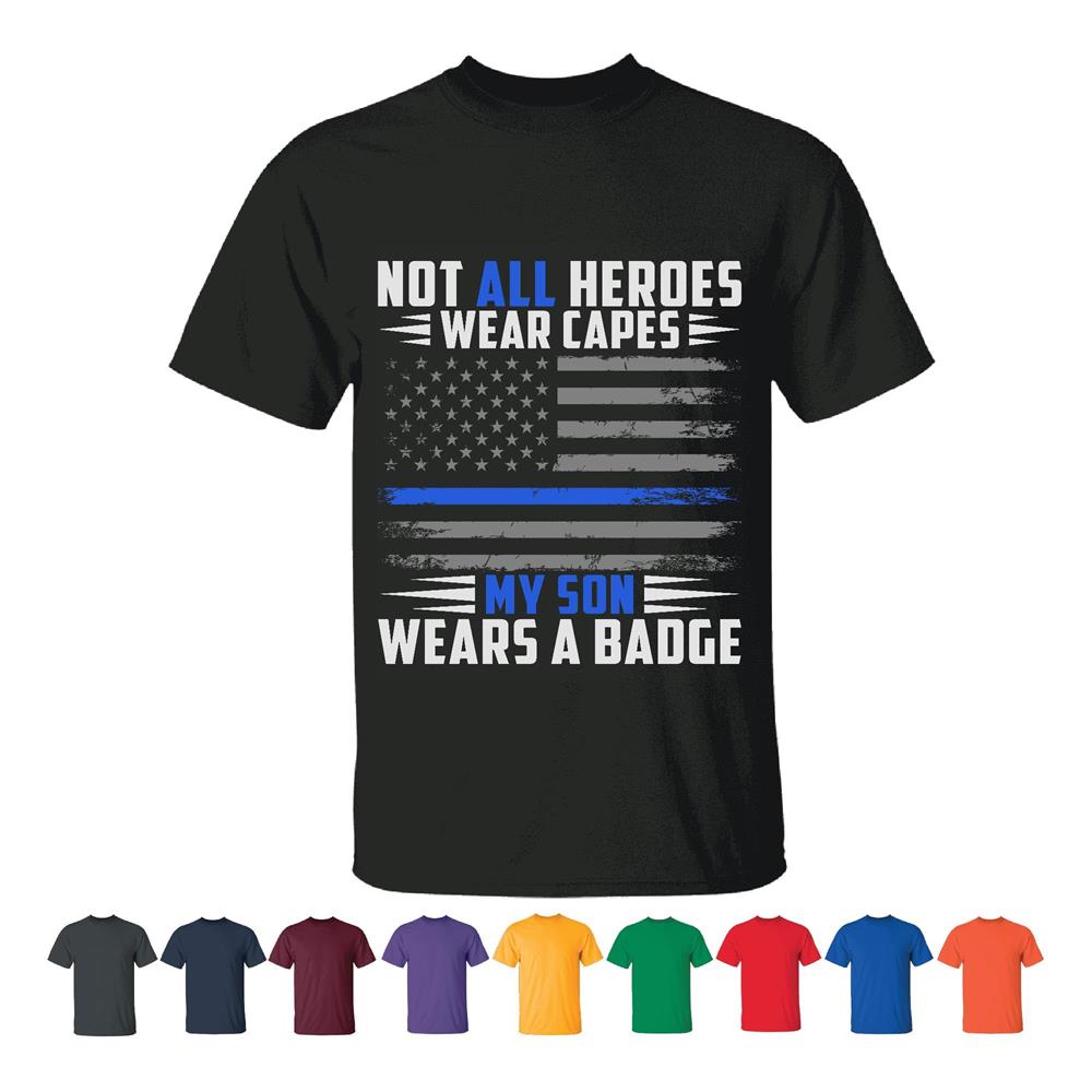 Police Officer Parent Gift – Not All Heroes Wear Capes My Son Does Men Women Black T shirt