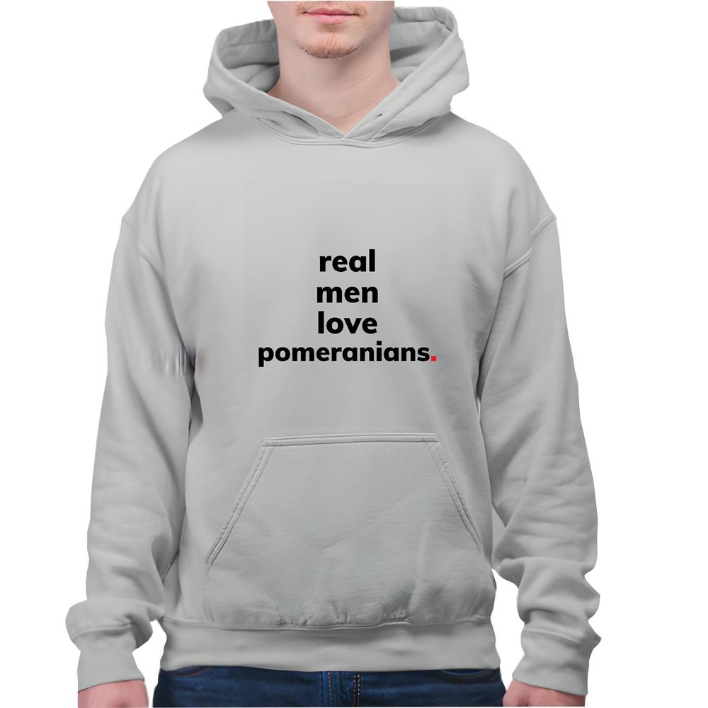 Pomeranian Dog Lover Real Love Saying Gray and Muticolor Unisex Hoodie