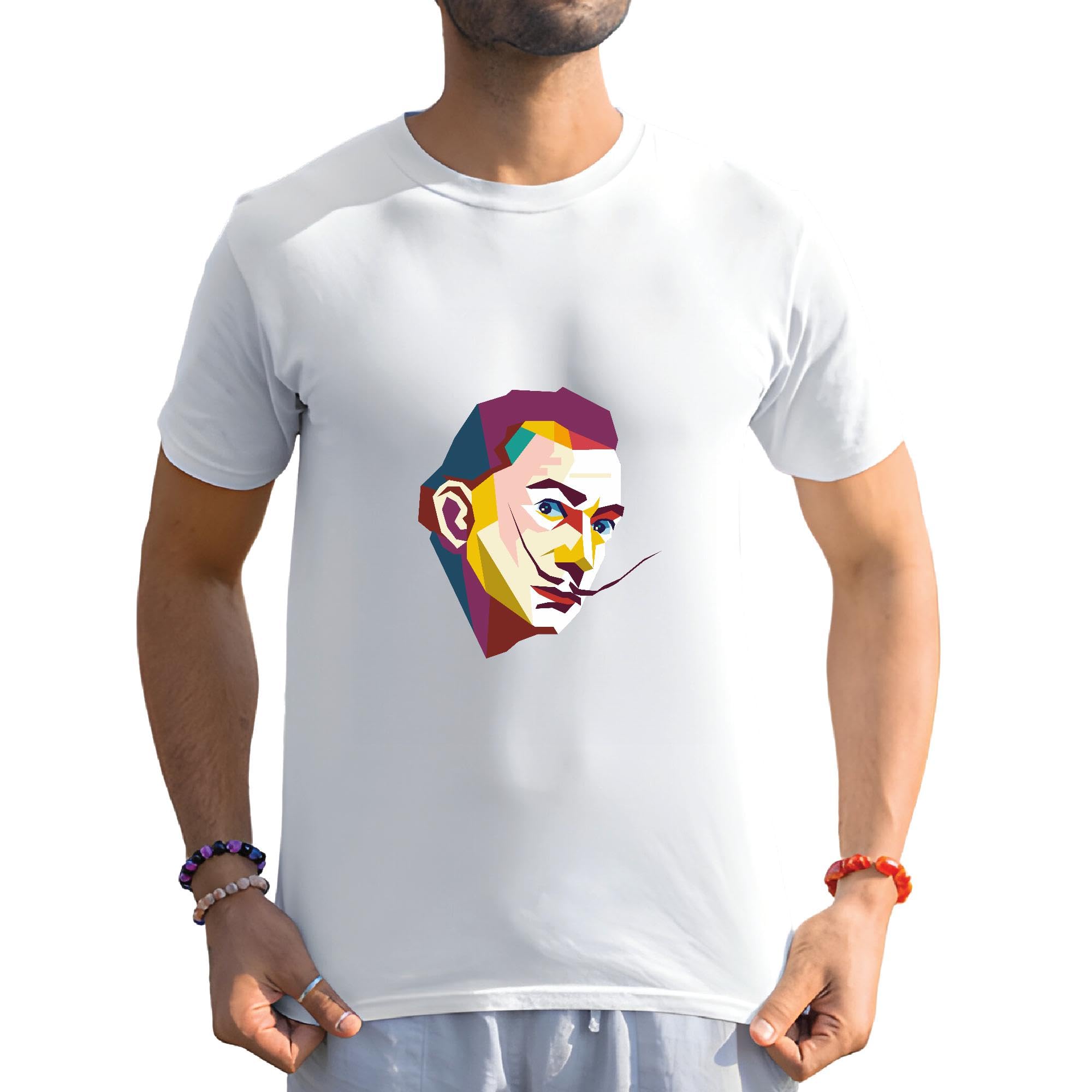 Pop Art Geometric Portrait Gift of Salvador Dali for Art Lovers and Fans Men Women White Gray Multicolor T shirt