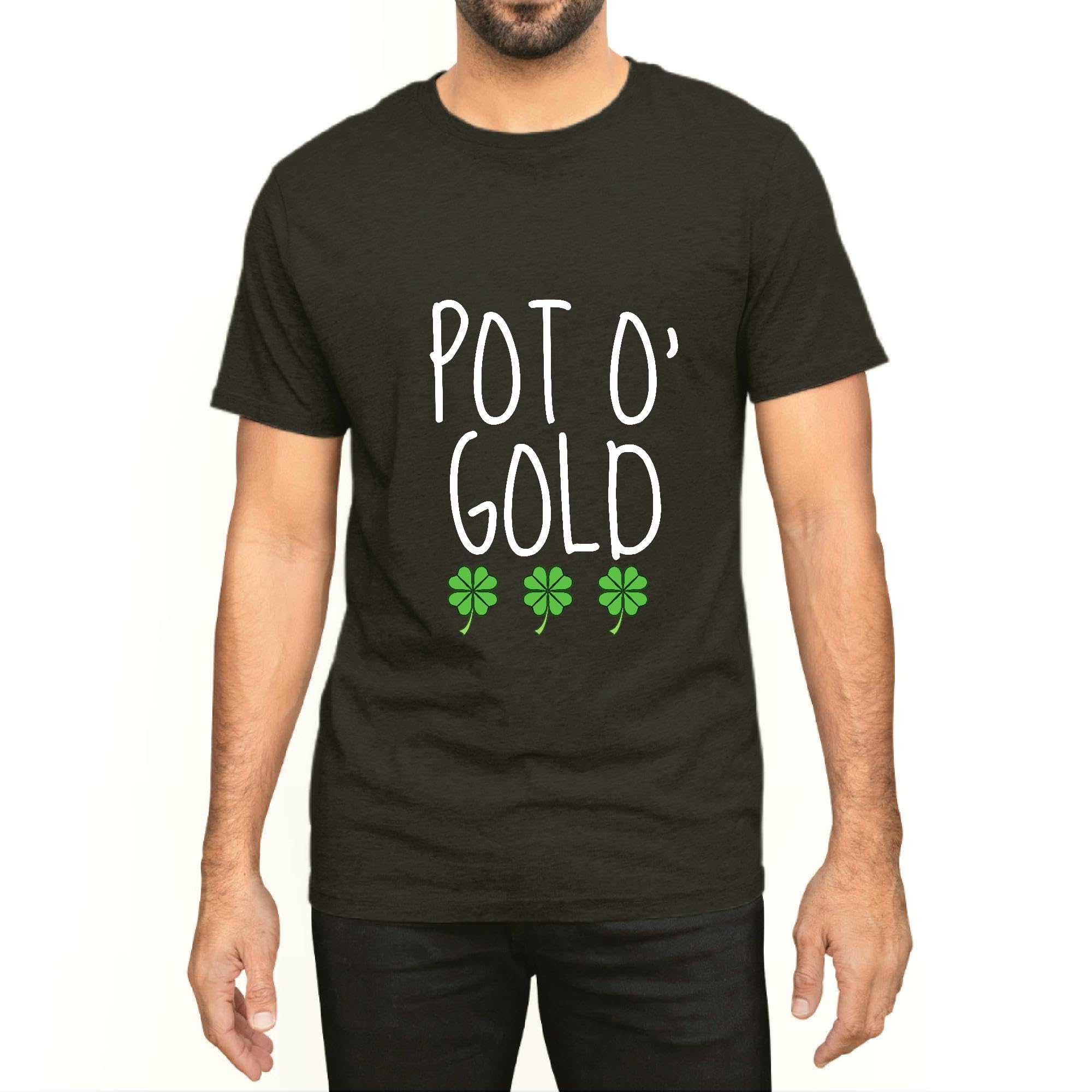 Pot O gold with Cloverleaf in Saint Patricks day Men Women White Gray Multicolor T shirt