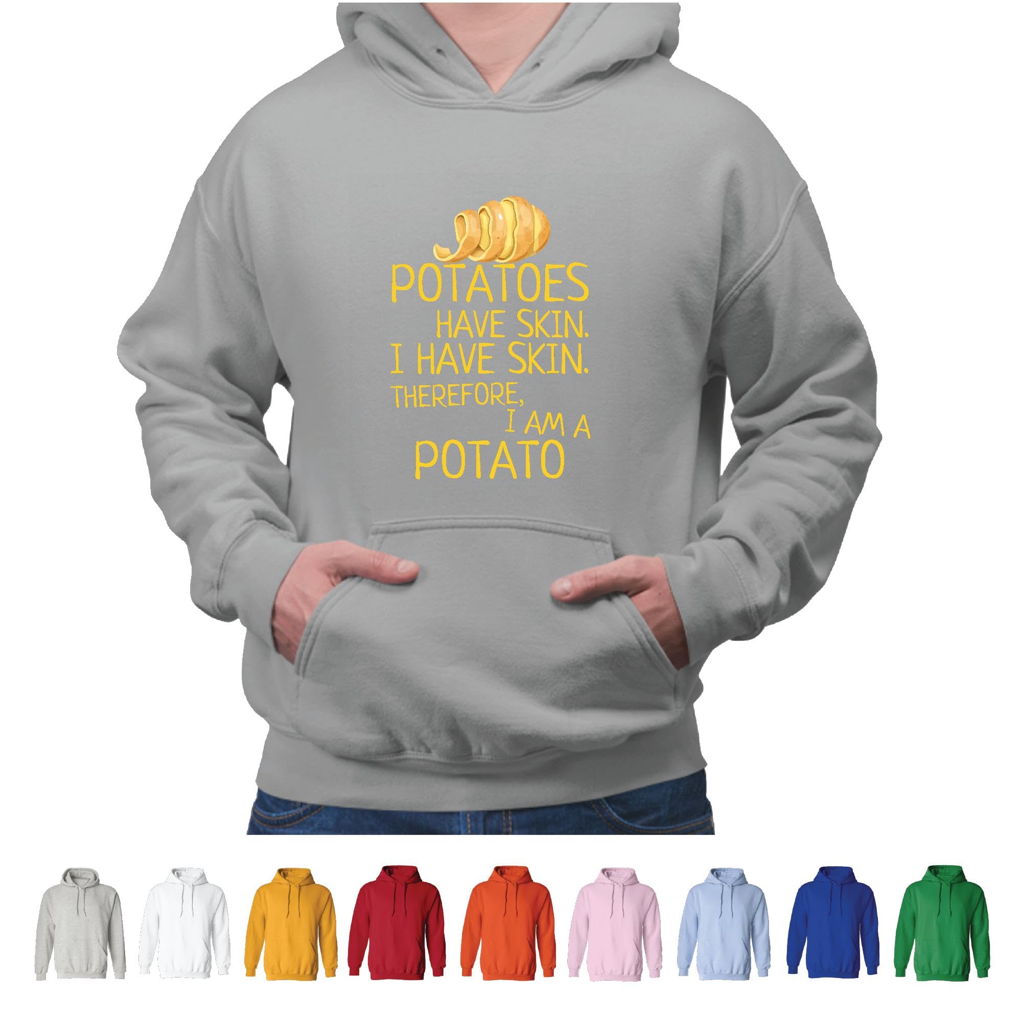 Potato Lovers Humor Sarcasm Food Gift Idea Gray and Muticolor Unisex Hoodie