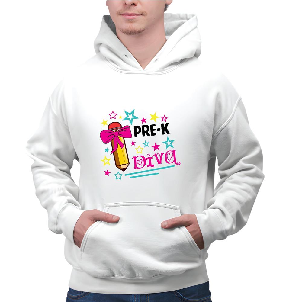 Pre K Diva Girls head Bow Student Teacher Preschool Gray and Muticolor Unisex Hoodie