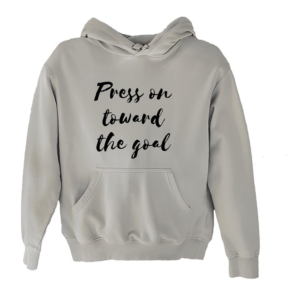 Press on toward the goal Phil 3 14 inspirational Christian Bible verse Jesus Faith Gray and Muticolor Unisex Hoodie