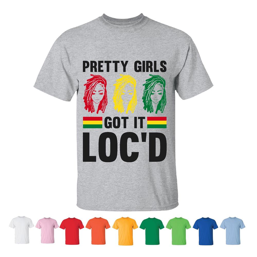 Pretty Girls Loc D Afro Black Pride Power Afrocentric Black Culture for Her Men Women White Gray T shirt