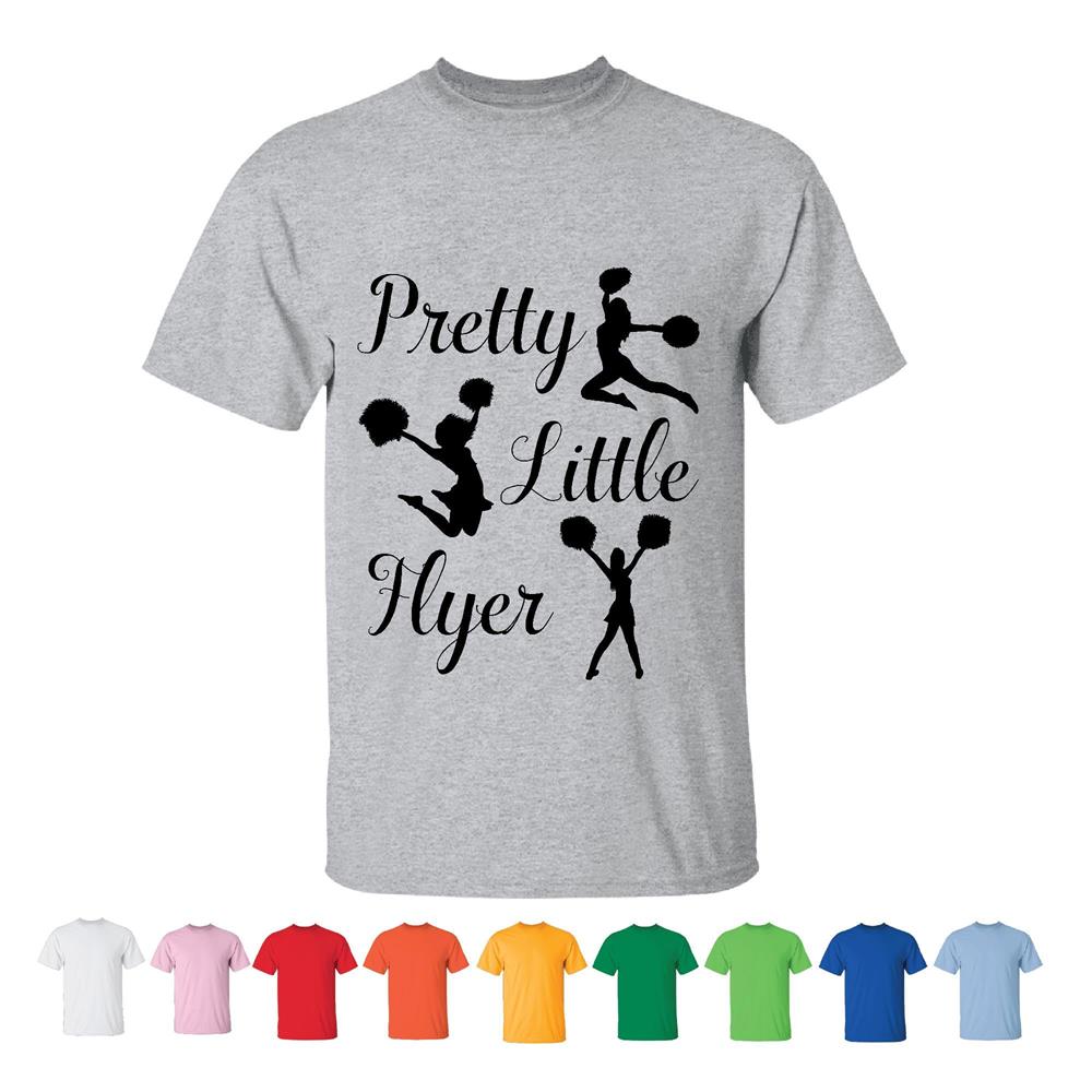 Pretty Little Flyer Cheer Team Mom Gift Perfect for Cheerleader Fans Girls Men Women White Gray T shirt